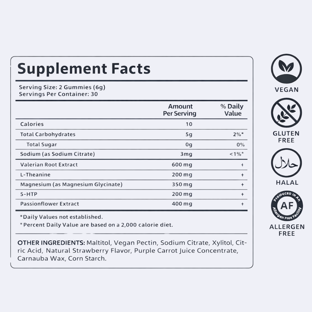 Ingredients like L-Theanine help ease mental tension before bed.